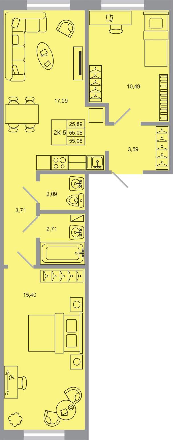 Продам двухкомнатную квартиру в новостройке 55.1 м.кв.