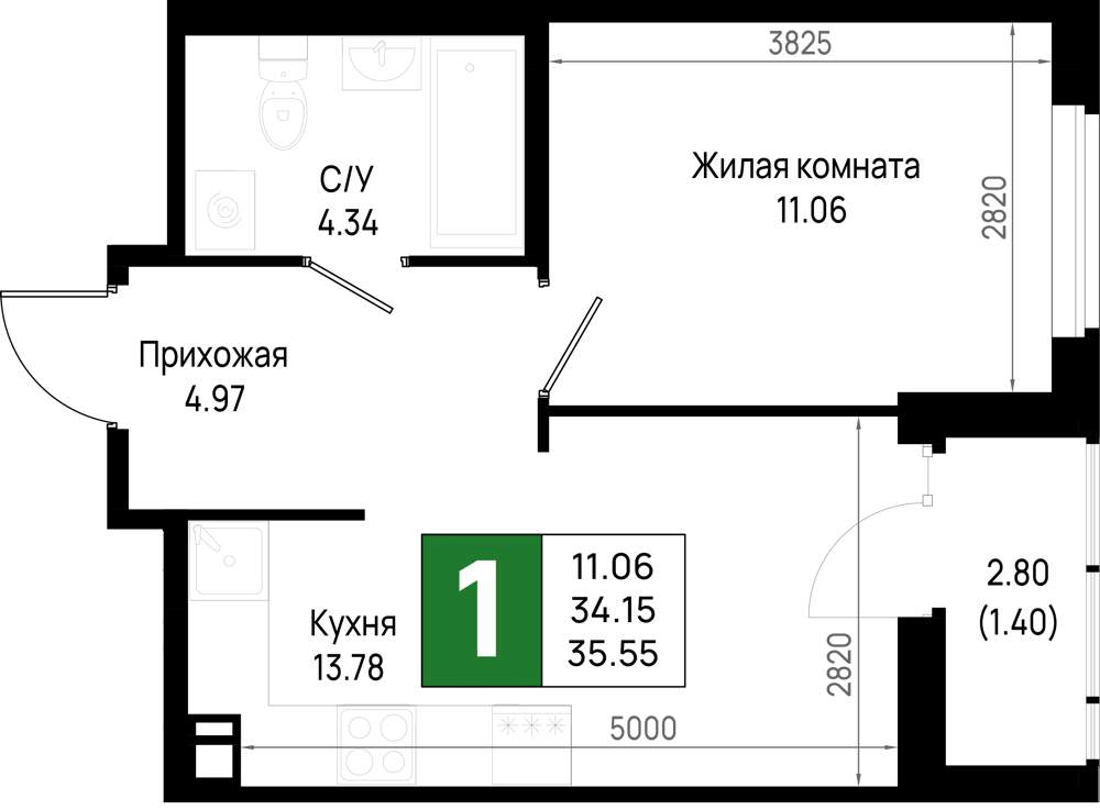 Продам однокомнатную квартиру в новостройке 32 м.кв.