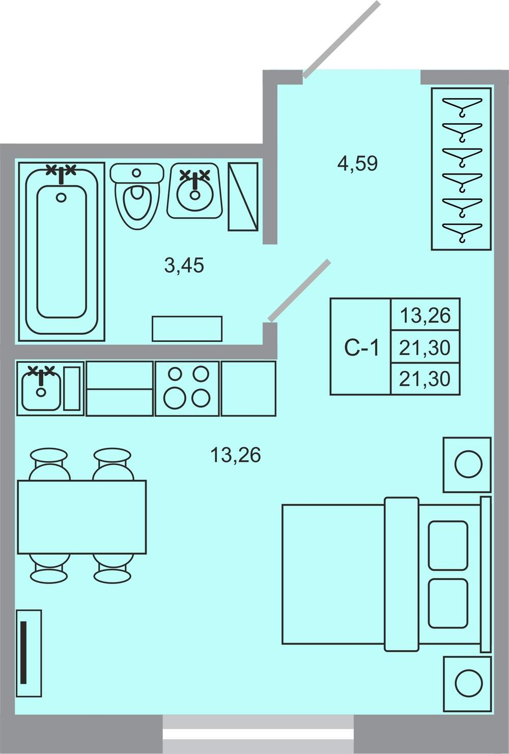 Жилая площадь 18.7 м2, чистовая отделка, комнаты изолированные.